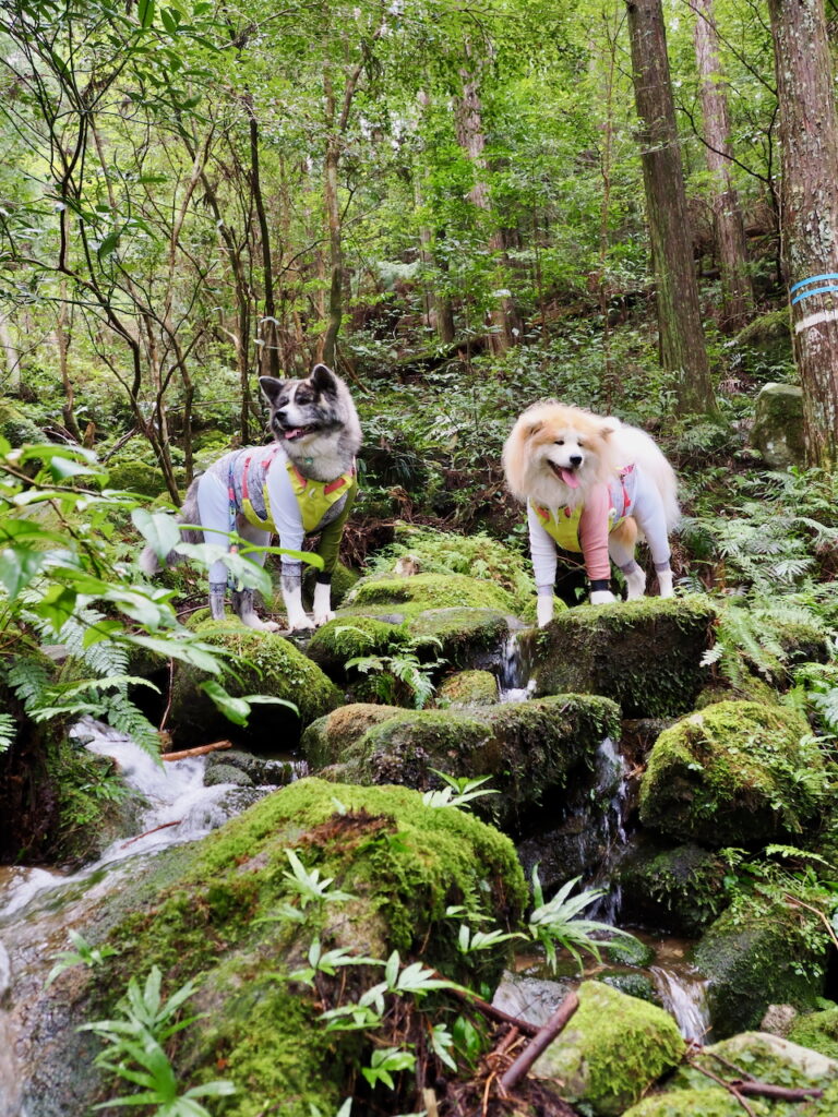 馬越峠までの登りの前半で川と古道が交差するところが2箇所あります。ちょっと喉が乾いたわんちゃんはここで給水するのもいいかもしれませんね。