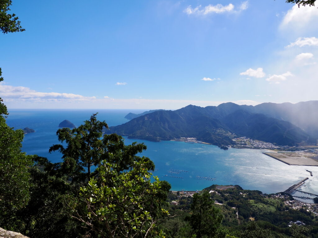 上の展望ポイントから眺める尾鷲湾の風景です。